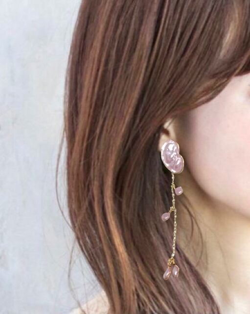 ニュアンスにこだわったピアス部分は、美しいピンクパールのような艶。